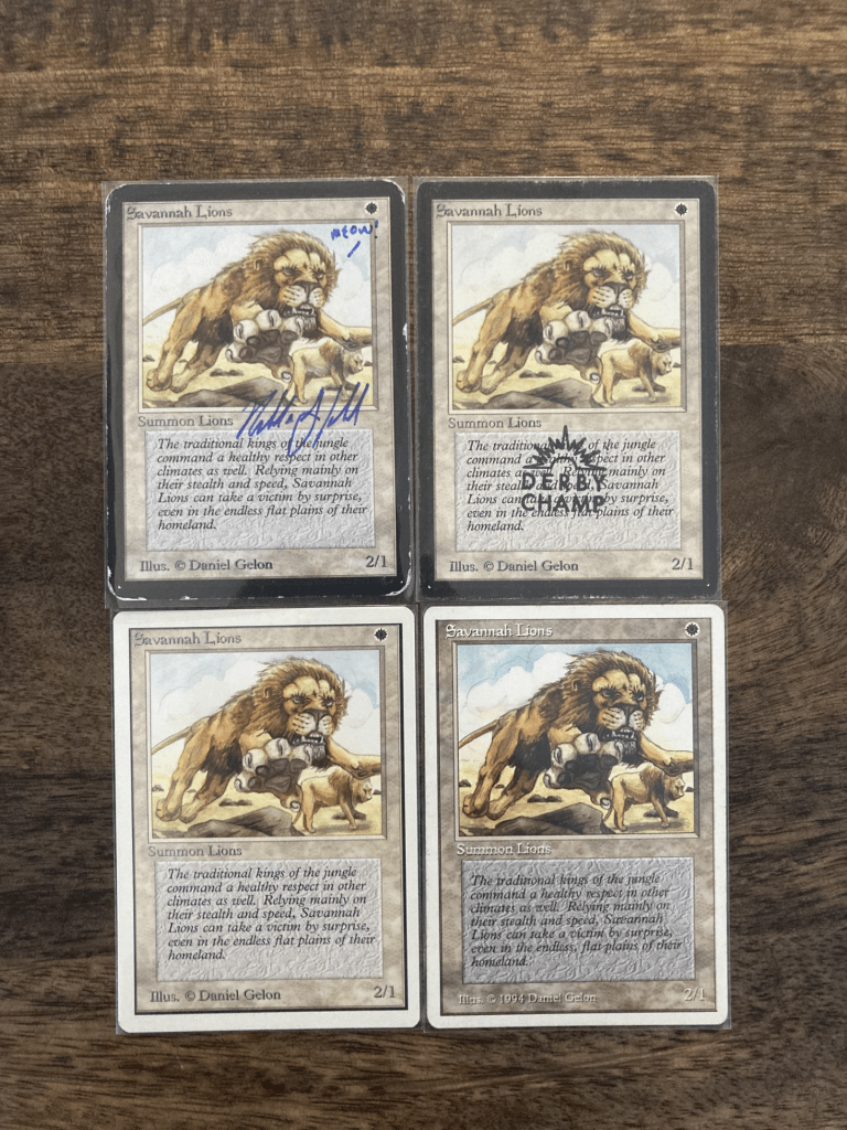 I managed to get to n00bcon once before in 2022 and had an absolutely barn stormer of a time (I discussed this previously on all tings considered). I assumed I would be very unlikely to get back again but since I was going to I wanted to try and find something sweet to play. By sweet I mean competitive enough for me to do well (with top 8 as a lofty goal) but also in my wheel house. Unfortunately, the one factory meta game didn’t leave too much room for activity (despite what some people might think), a few people have already discussed this but the meta forces a lot of folks into – the deck, twiddle vault or some sort of mid-range deck that probably has Su-Chi. If you have ever seen any of my decks you will know that none of these are my preferred way to play Magic. While I do have fully Swedish legal power I don’t have every Swedish legal card available to me, so I would need to figure something out without having to buy a bunch of cards in a relatively short time period. The two decks that I usually play in Swedish are DFB green and LDB. My gut told me both of those were really bad – a testing session with friends and an online NEOS event proved me correct on both of those fronts. This was also feedback I was getting from others whose opinions I trust like Svante and Wheel. I did build a kind of spicy 4 Atog + 4 Su-Chi + 4 Copy Artifact + 4 Fireball deck which was surprisingly good but wasn’t exactly what I wanted to be doing, so I ended up shelving it since I really wanted to play my Swedish Lions playset in Sweden.