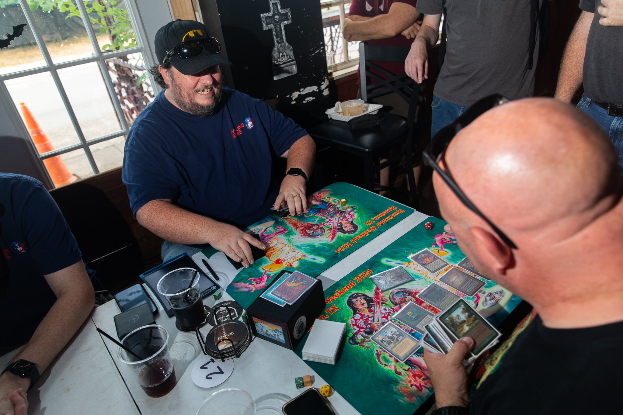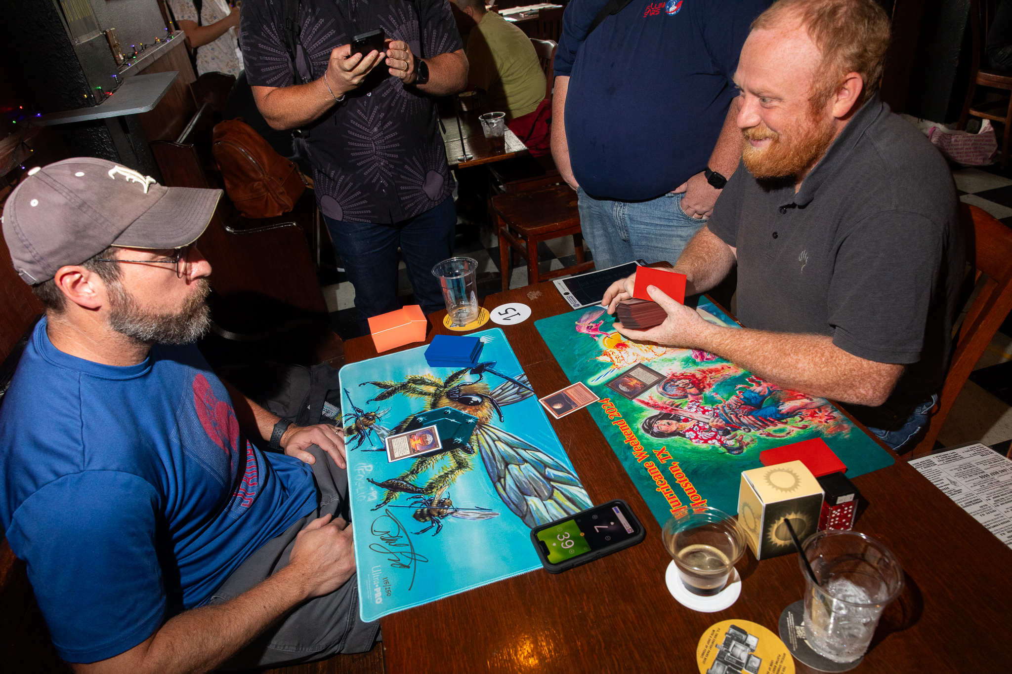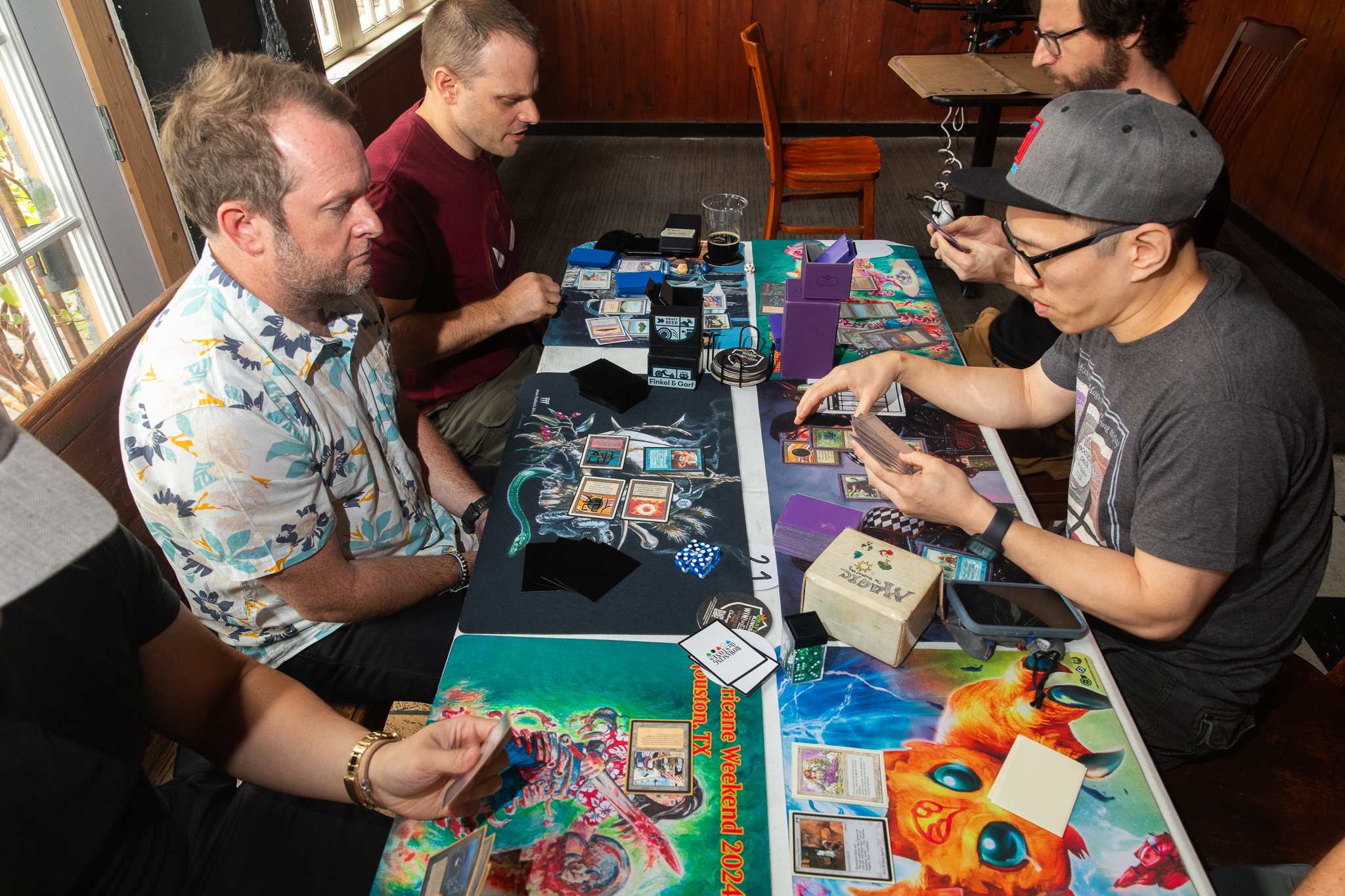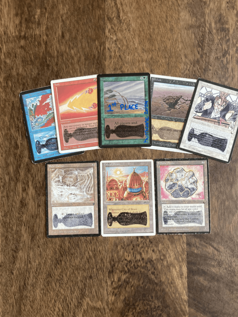 Another joint effort with Romancing the Stones, Hurricane 2024 was the Falling Stars’ third Old School constructed event, and it was once again a huge success. First of all, a huge thanks to all of you for coming out to Rudyard’s to play some Old School Magic with us this weekend! Lots of old cardboard (and a few proxies) were slung over the course of the weekend. We could not have had the success that we had without you showing up to enjoy some vintage cardboard in the company of folks that love doing the same thing. A special shout-out to those that travelled from Austin, San Antonio, Oklahoma and Colorado! The turnout for Old School (45 players!) was fantastic, and the turnout for vintage was also a very healthy 27 players.
