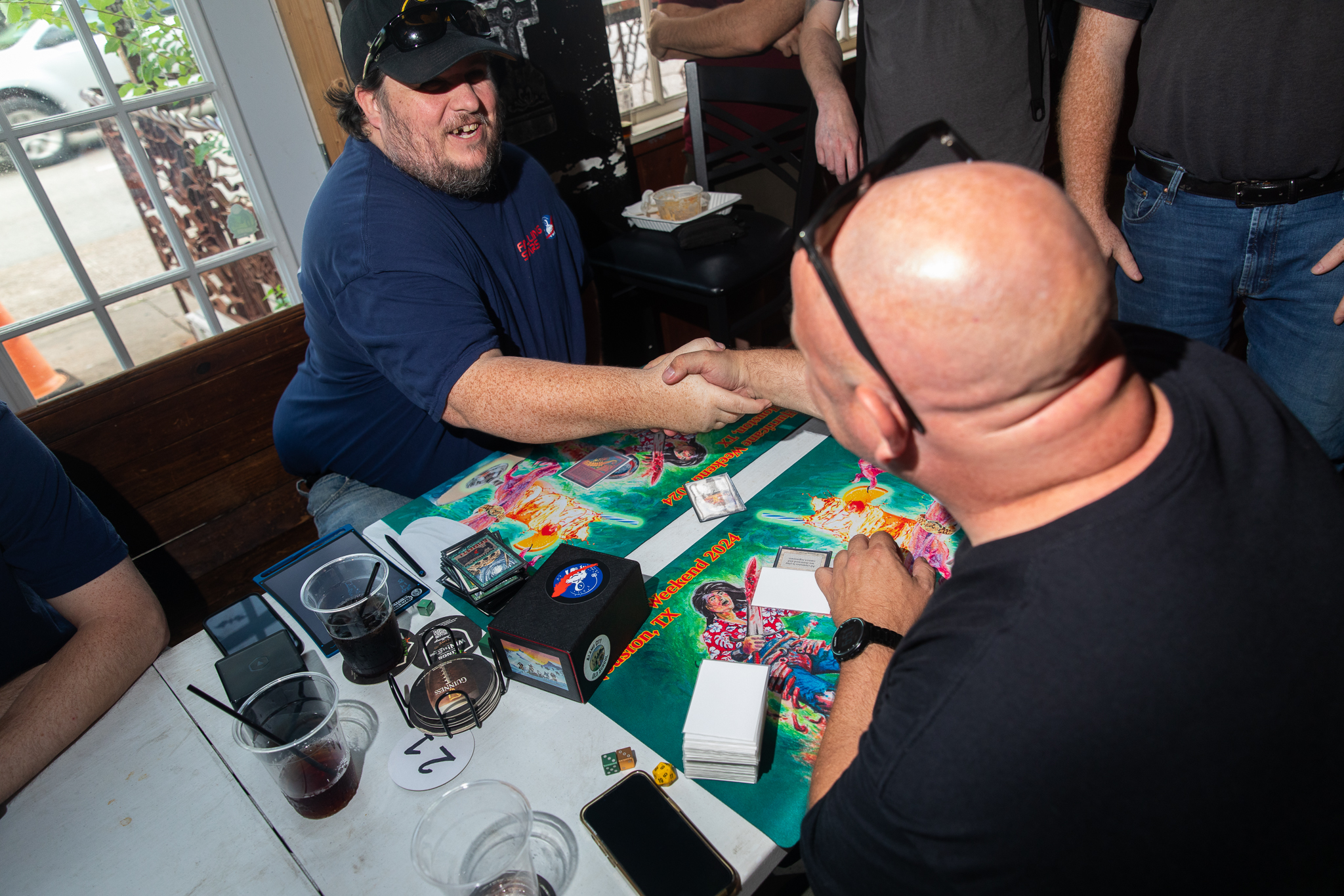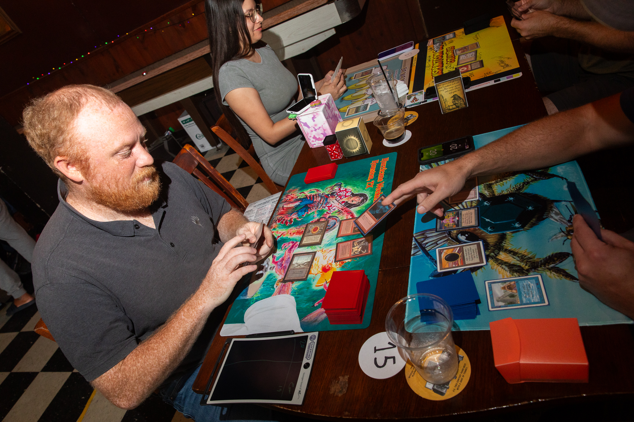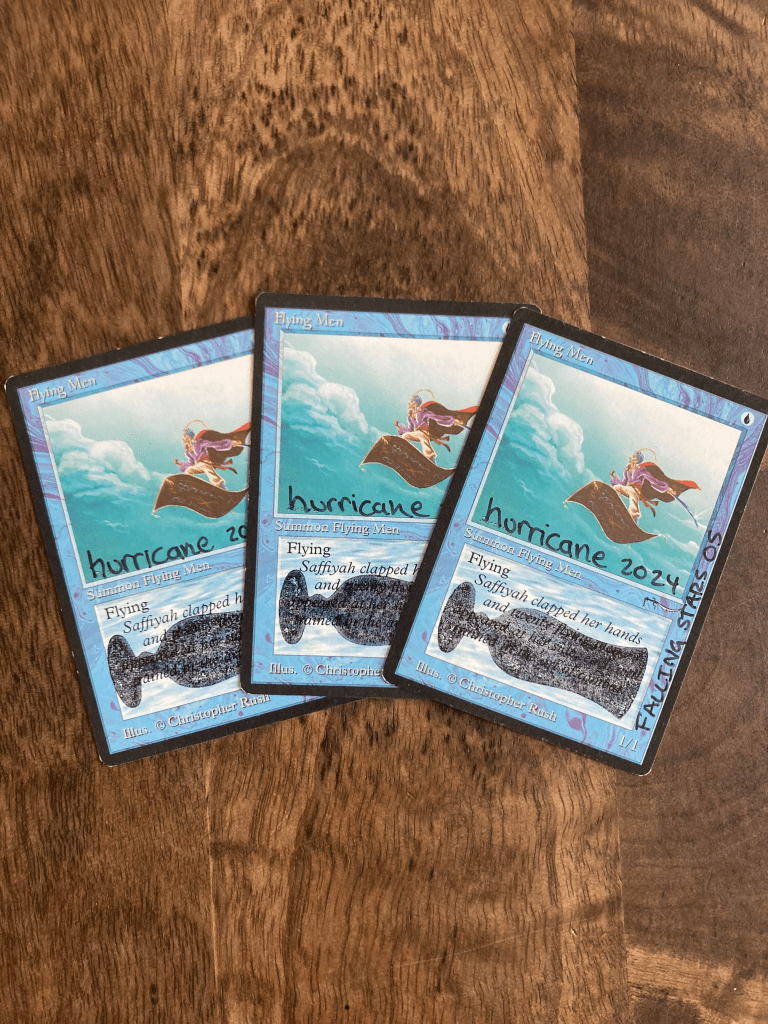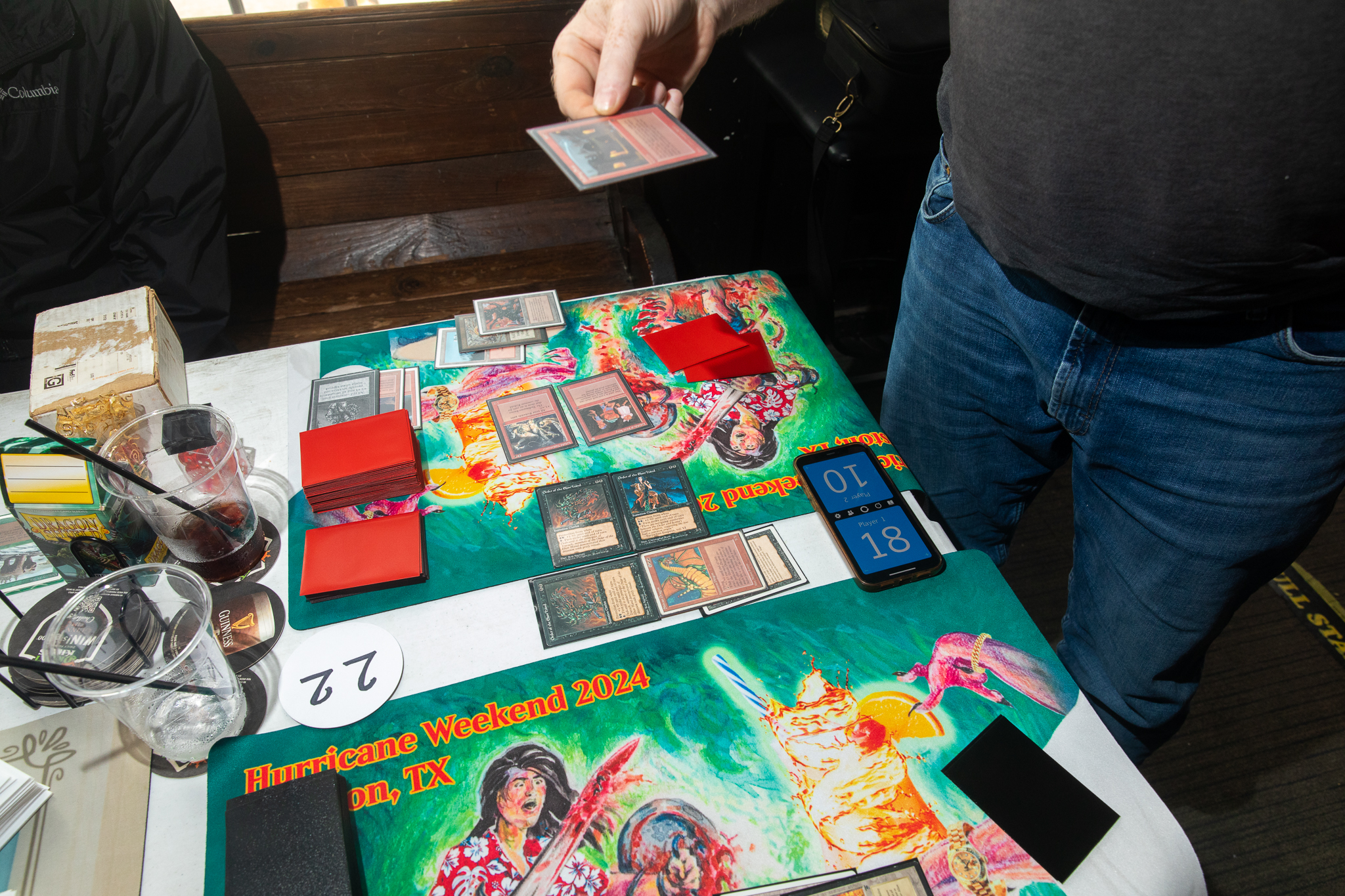 Another joint effort with Romancing the Stones, Hurricane 2024 was the Falling Stars’ third Old School constructed event, and it was once again a huge success. First of all, a huge thanks to all of you for coming out to Rudyard’s to play some Old School Magic with us this weekend! Lots of old cardboard (and a few proxies) were slung over the course of the weekend. We could not have had the success that we had without you showing up to enjoy some vintage cardboard in the company of folks that love doing the same thing. A special shout-out to those that travelled from Austin, San Antonio, Oklahoma and Colorado! The turnout for Old School (45 players!) was fantastic, and the turnout for vintage was also a very healthy 27 players.