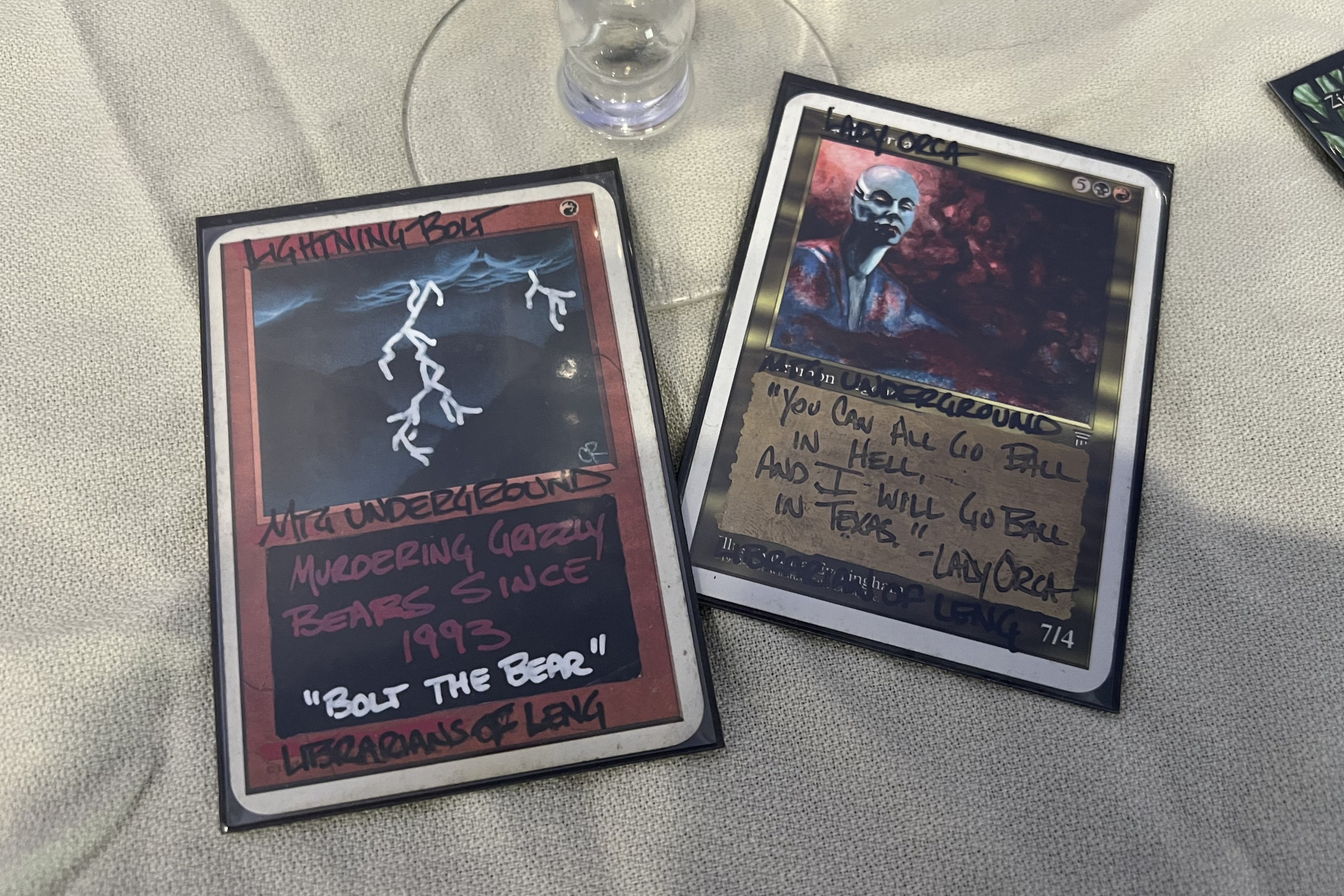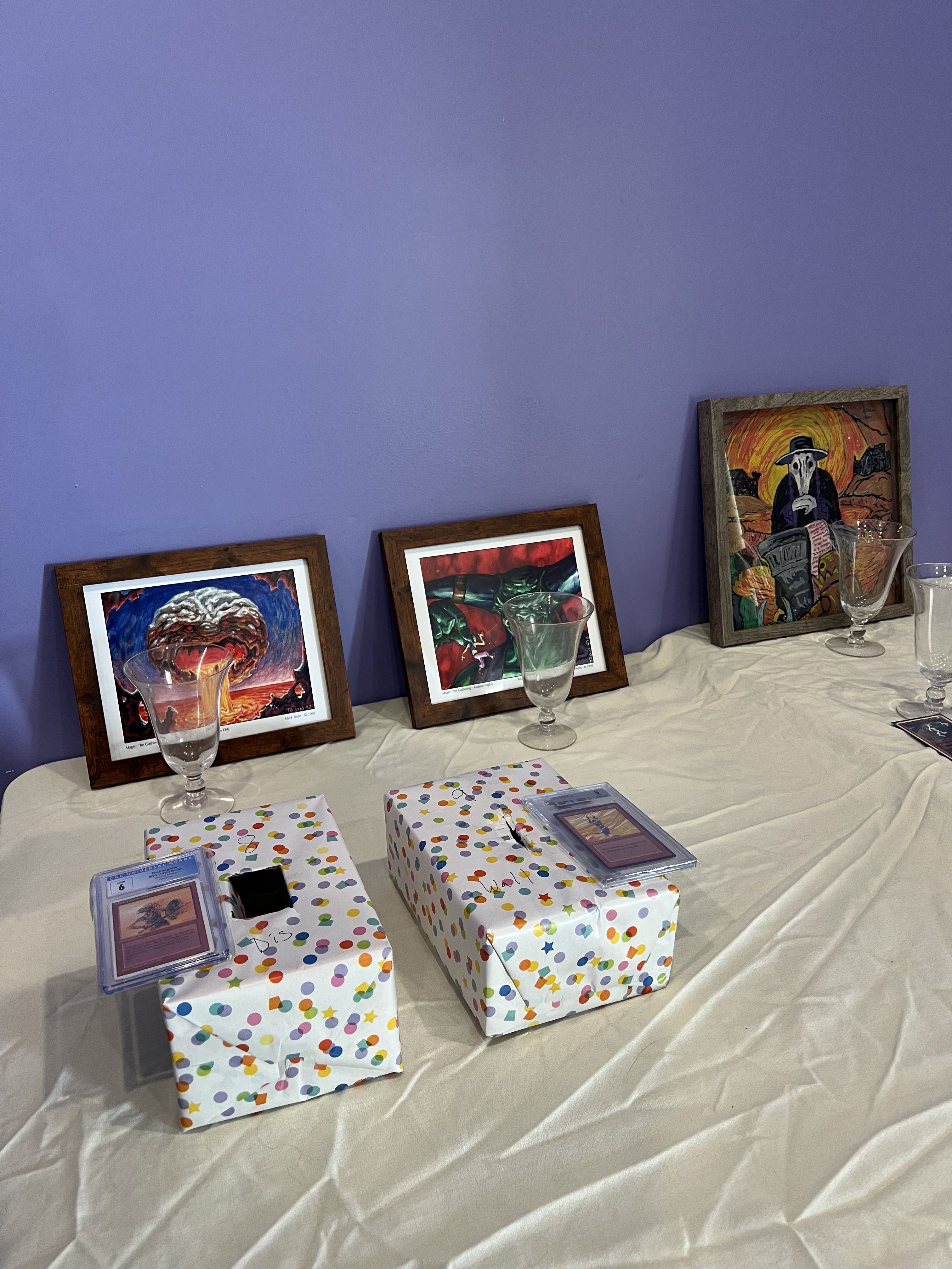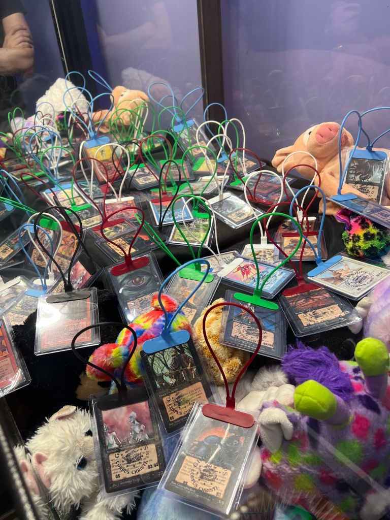 The raffle was STACKED. I didn’t even take photos of all the items, but here’s a few! There was also the original Magic encyclopedia, a Ghost Ships playmat, some alters done by one of the guy’s daughter…