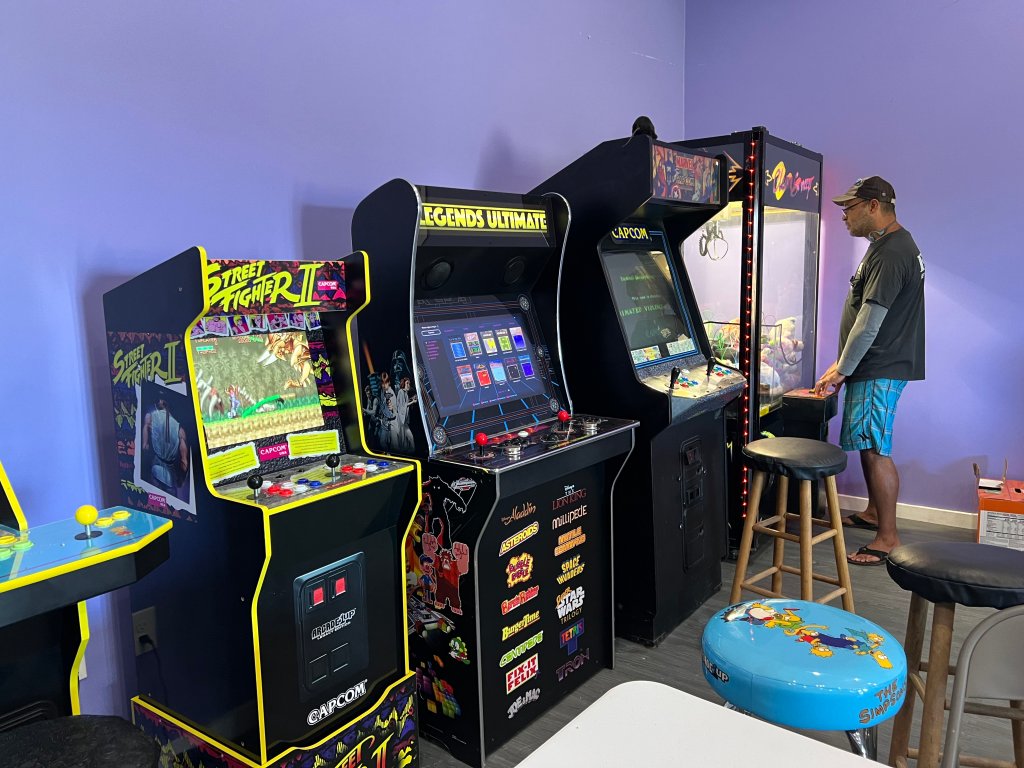 The tournament was held at Tracey’s house. Prior to arriving, Simon and I were a bit unsure how that was going to go but, actually, it blew all our pre-conceived suppositions away. The detached game haven was beyond perfect for the event. We didn’t have to worry about parking (plenty on the lawn) or nosey bystanders. There was plenty of space to be comfortable. Tracey and his wife also provided A+ first-rate hospitality, providing drinks for double the crowd we had and plenty of snacks. Then there was all the cool stuff they just happen to have…